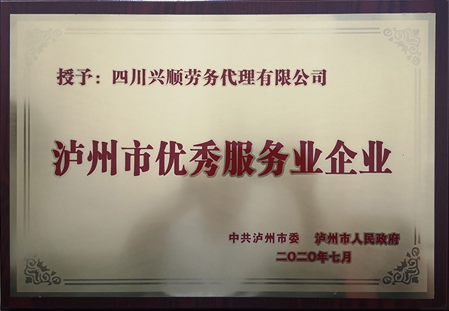 瀘州市優(yōu)秀企業(yè)獎牌2020.7.23